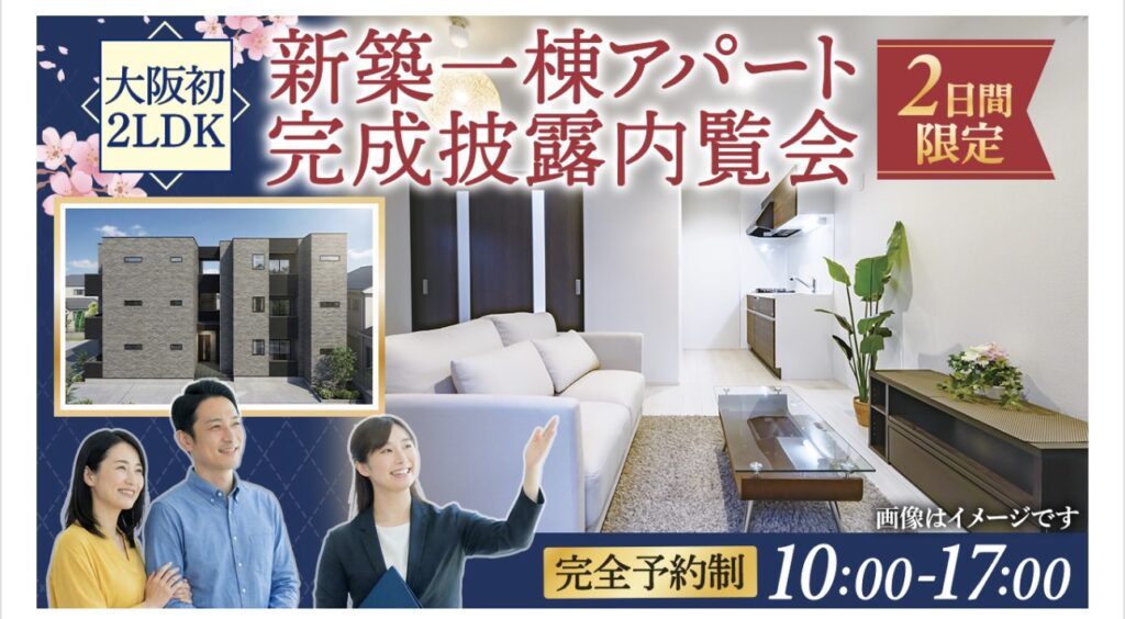 先日、検討中と同じメーカーが大阪の塚本に新築を完成させたとのことで、最新の2LDKアパート内覧会へ行ってきました。