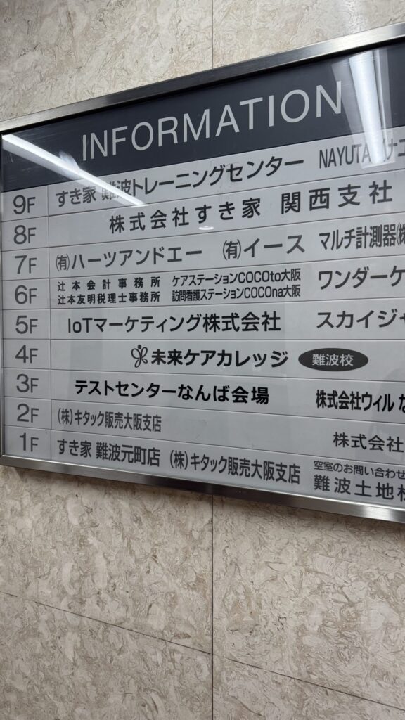 今回の会場は難波にある「株式会社ウィル なんば試験会場」でした。